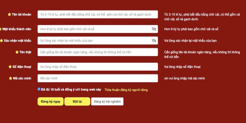 Họ tên, số điện thoại, email và thông tin ngân hàng cần trùng khớp với giấy tờ cá nhân để đảm bảo bạn có thể rút tiền về tài khoản sau khi thắng cược.